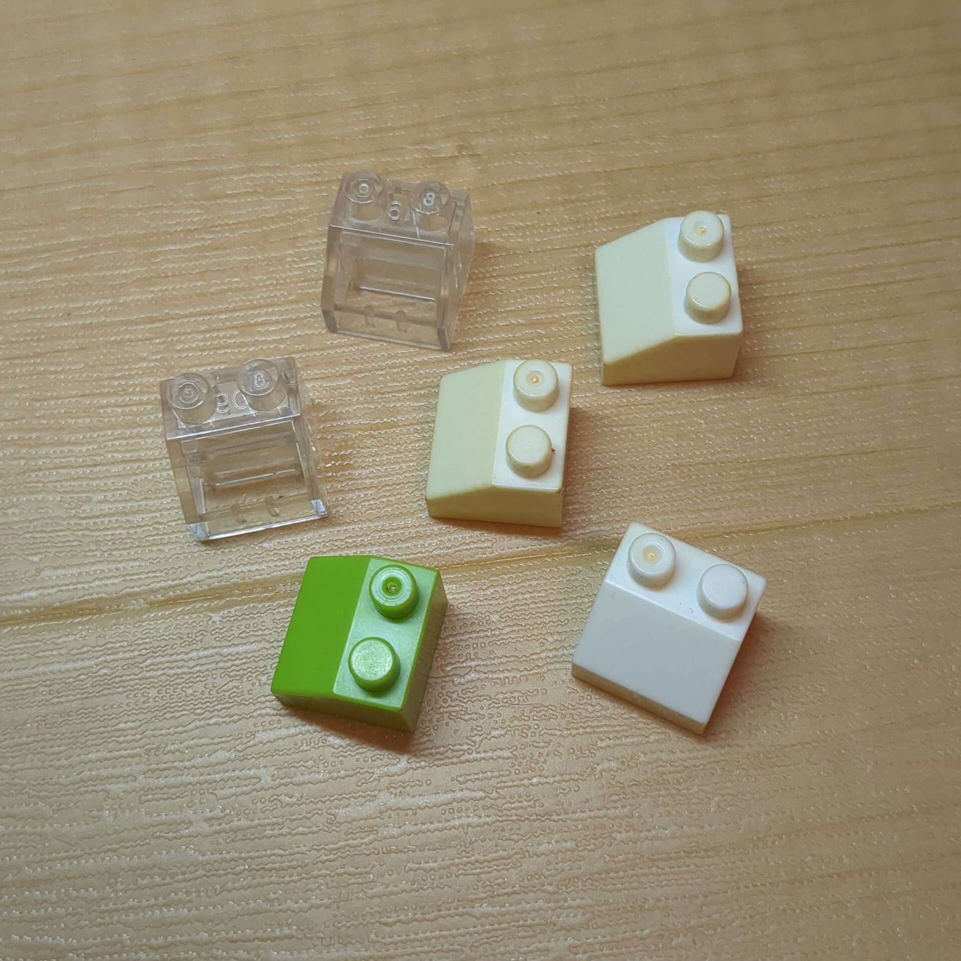 – タイトル:【ブロック玩具】カワダブロック 2×2スロープ(屋根ブロック・45度)ホワイト×3 クリア×2 グリーン×1