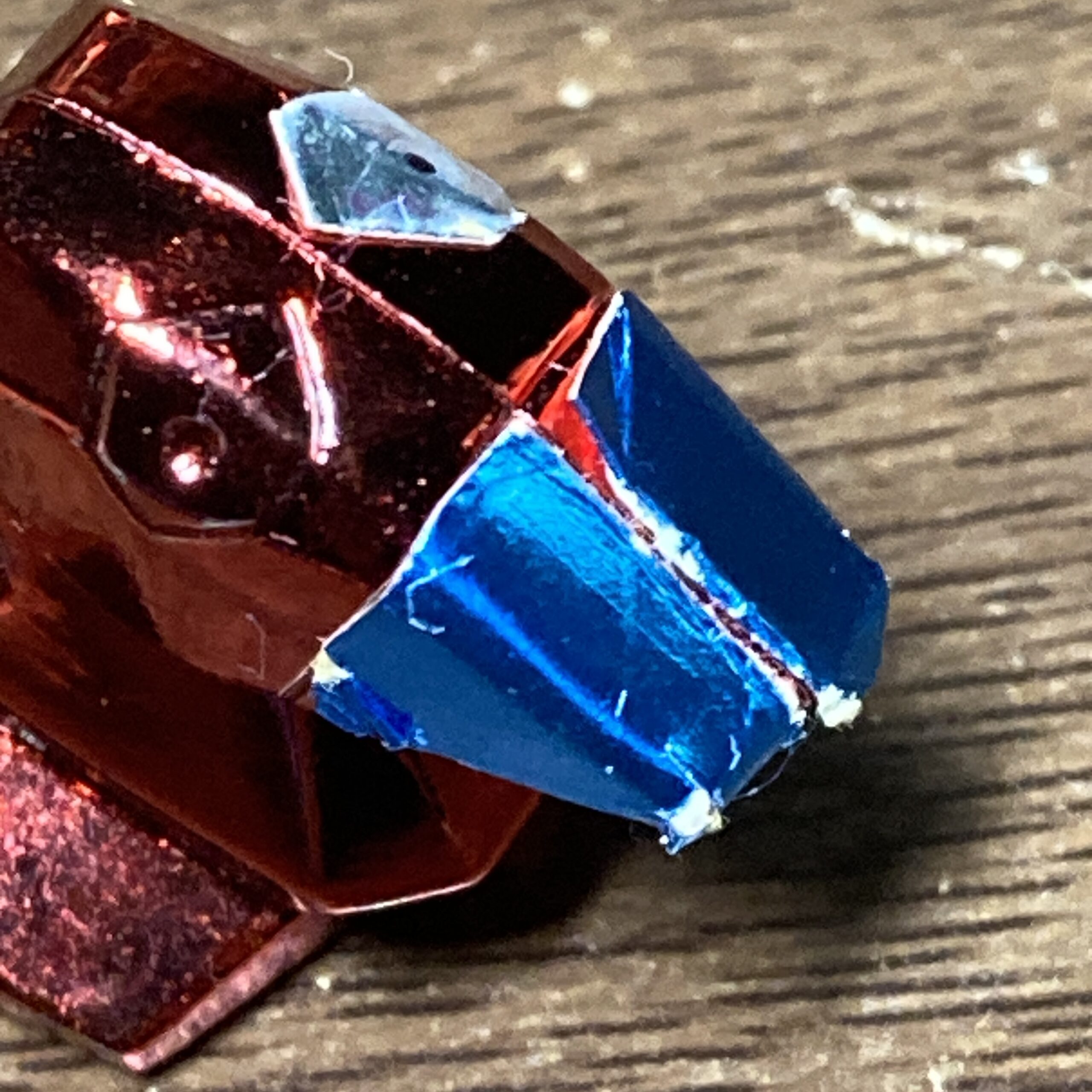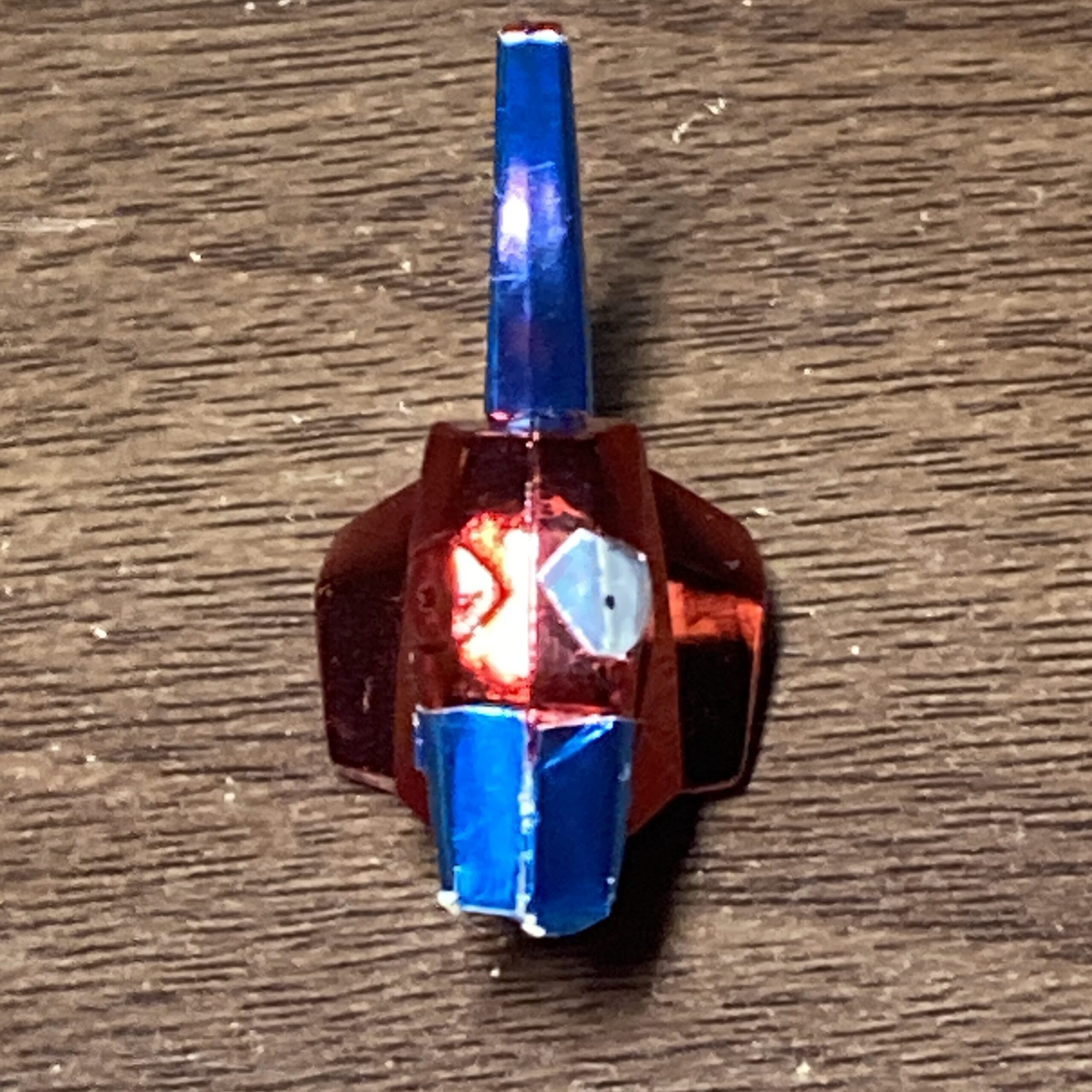 金属ではなく光沢のある軽い材質です。
