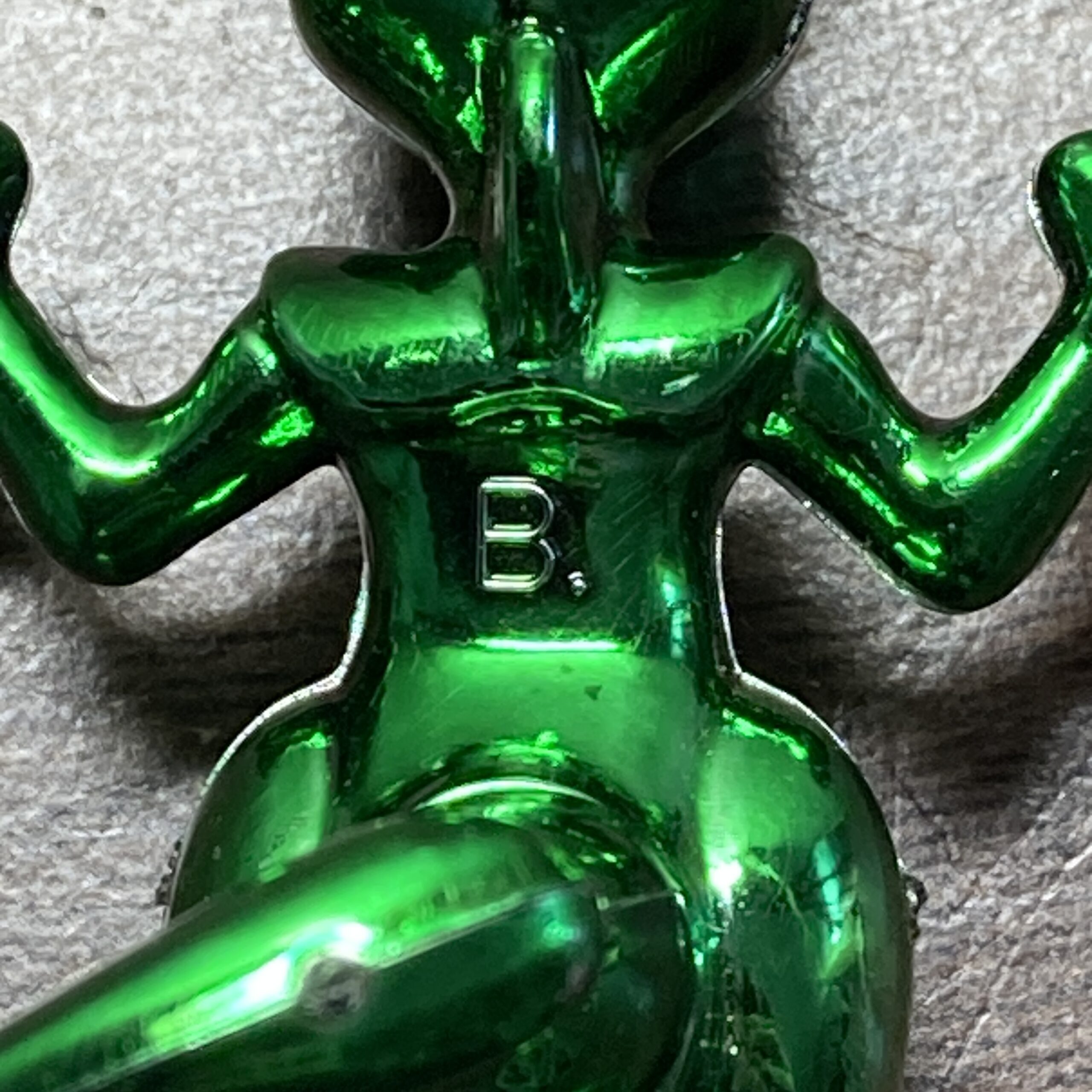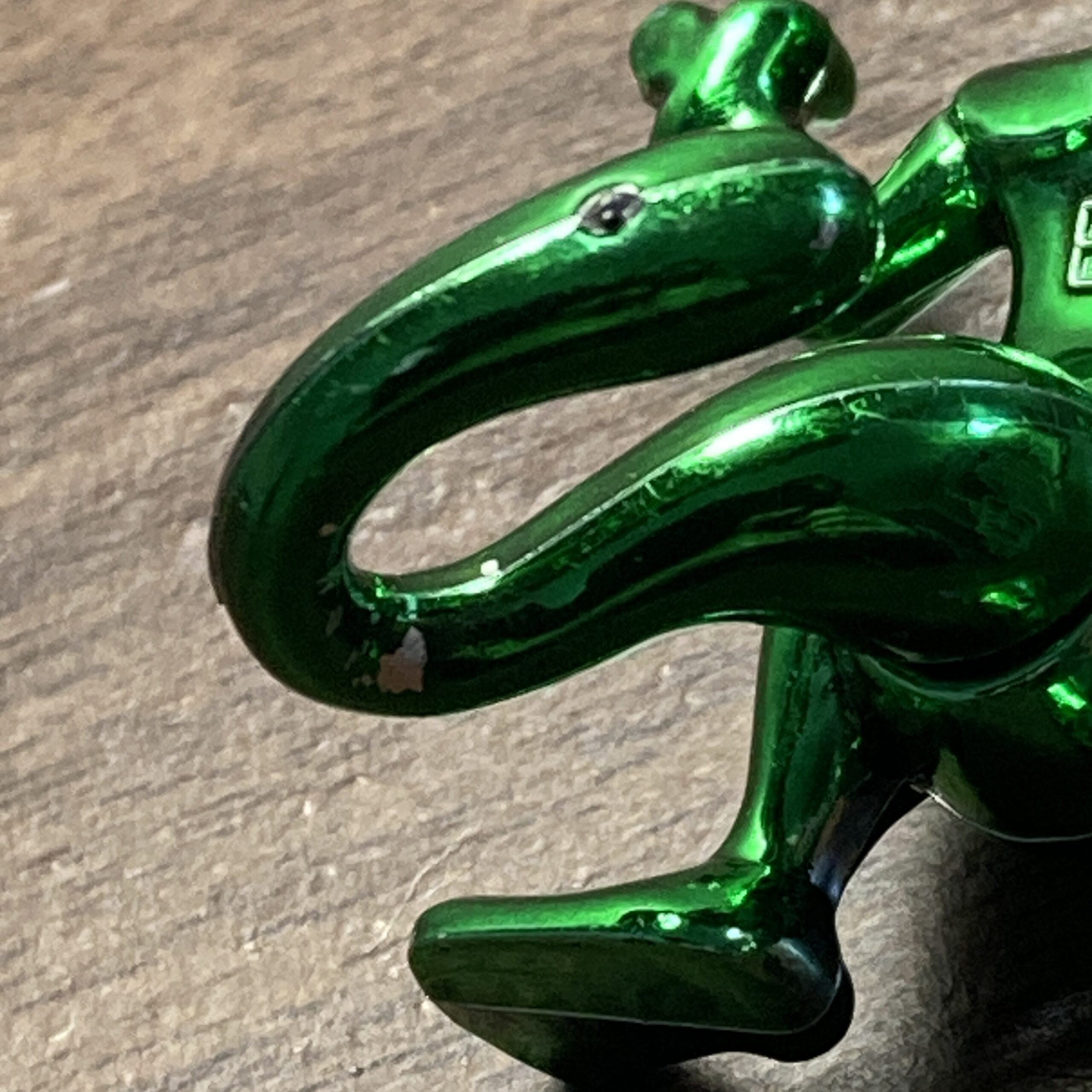 金属ではなく光沢のある軽い材質です。